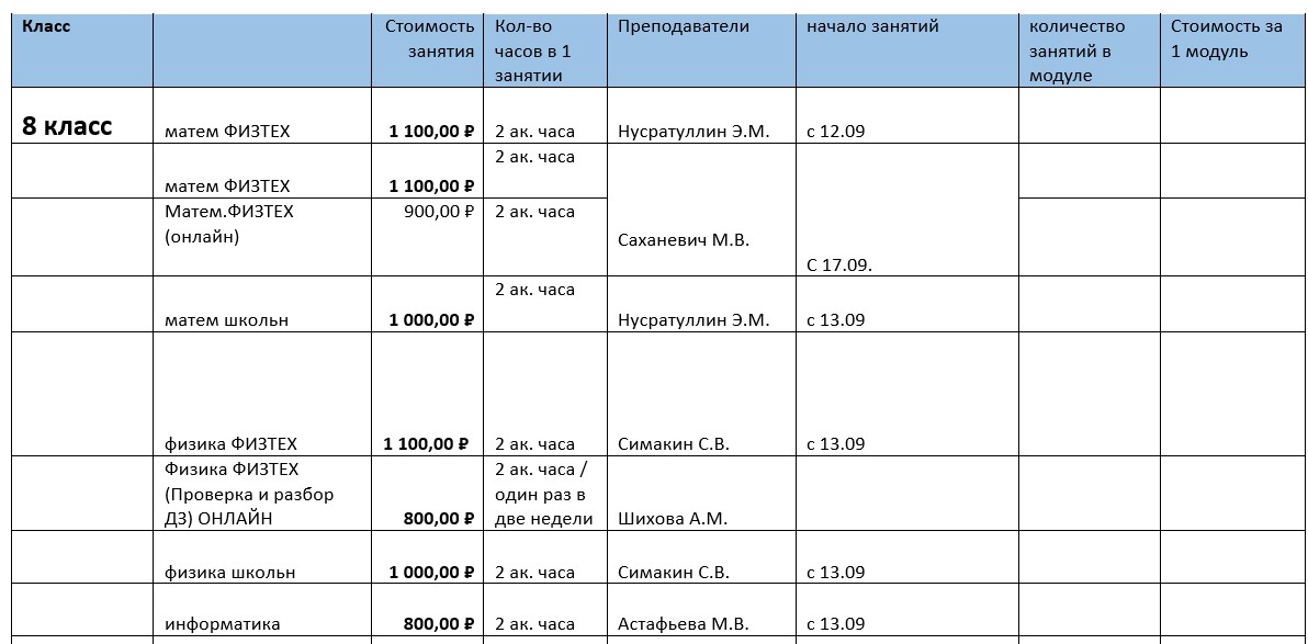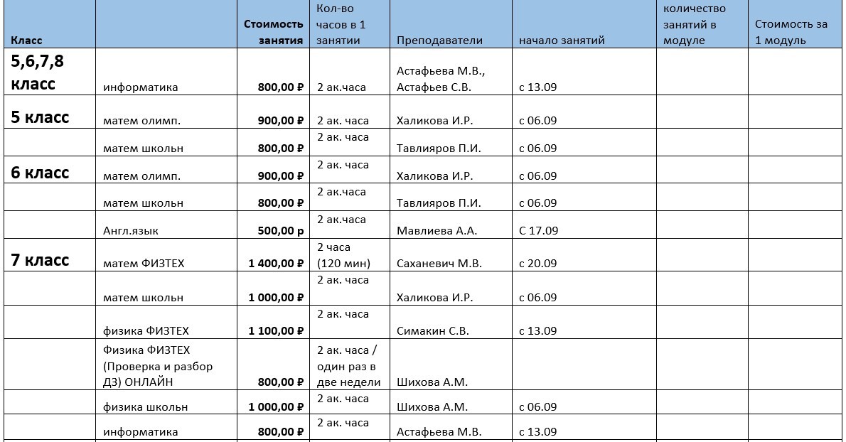 3 и 4 классы /1 занятие 1500 рублей (180 минут)